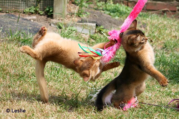 Hoewel je Abessijnen en Somali’s heel goed in huis kunt houden, verdragen ze het niet om te worden opgesloten. Gesloten deuren zijn een gruwel voor ze, je moet ze vrijheid en ruimte geven, een royale buitenren of een afgeschermde tuin met veel klim en speelmateriaal is het einde. Gewoon loslopen zou nog beter zijn, maar dat is beslist af te raden. Niet alleen diefstal en het verkeer vragen veel slachtoffers, maar er heersen te veel besmettelijke ziekten onder loslopende huiskatten om risico’s te dragen.